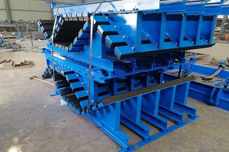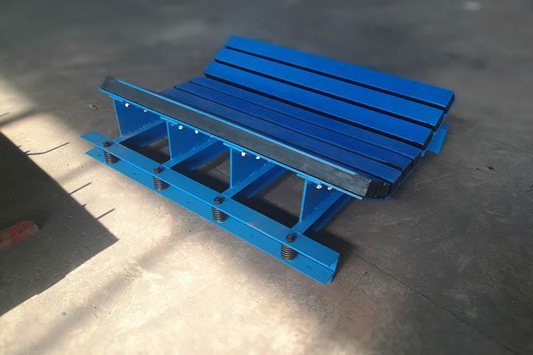 2、皮帶機輔助運轉設備—緩沖床、緩沖條、清掃器、搪瓷溜槽、塑料溜槽、導料槽、支撐中心架、重錘箱等.
